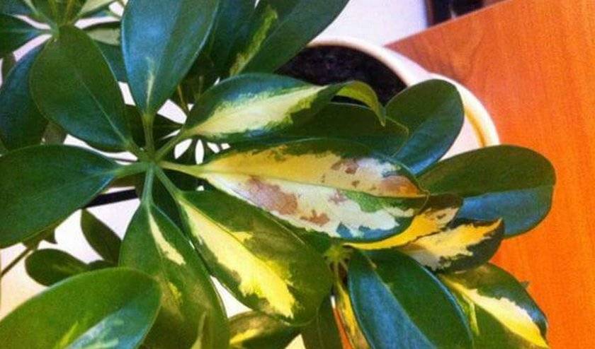 Заболевания поражают шеффлеру в результате неправильного ухода.