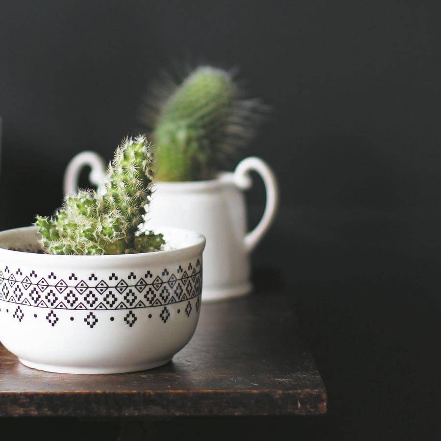 Кактусам не нужно много воды, поэтому можно растить их в чайных или кофейных чашках без дырок для дренажа (используйте керамзит на дне)