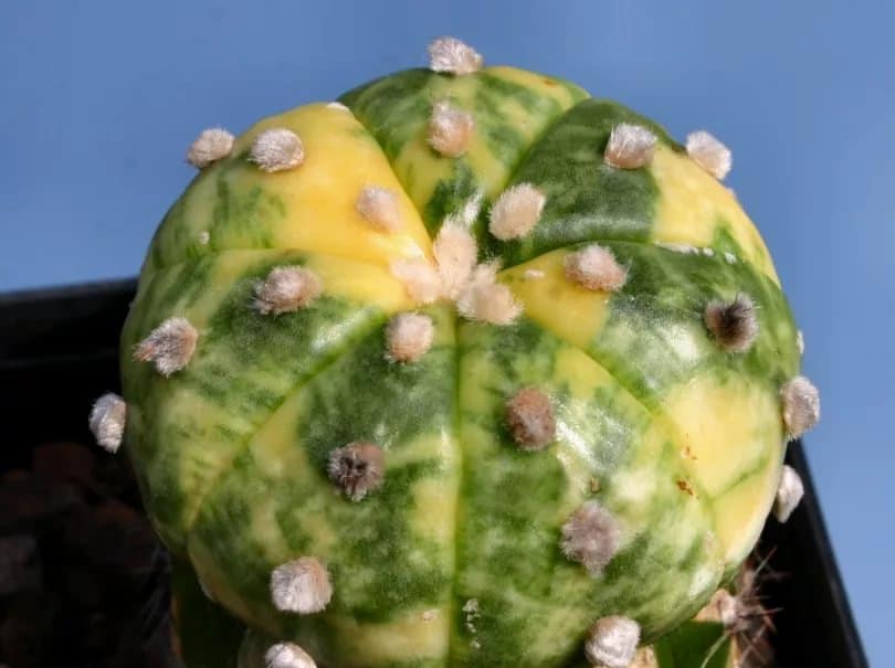 Вариегатность кактуса (как и любого другого суккулента) подразумевает нарушение в выработке хлорофилла – в результате случайного сбоя или намеренно вызванное при помощи селекции.
