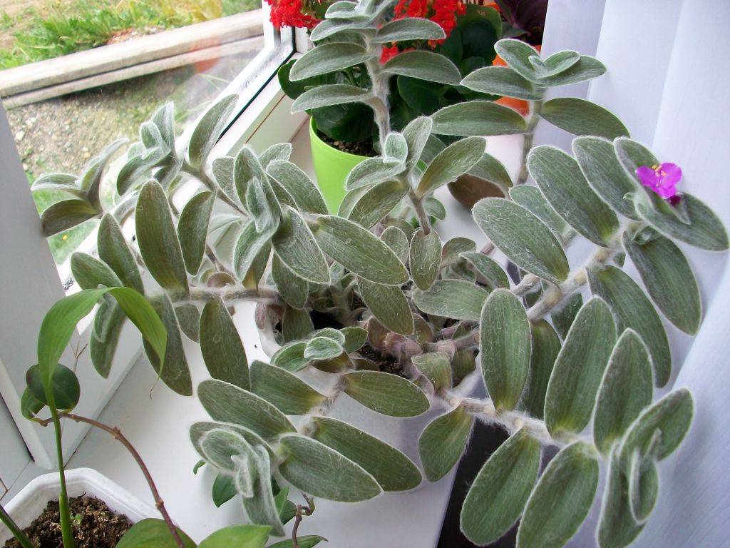 Или каллизия изящная – миниатюрное растение с коленчатыми ползучими стеблями длиной более полуметра, которые сначала растут прямо, а потом опускаются. Это растение очень похоже на традесканцию. В высоту оно достигает 30-40 см. И листья, и стебли каллизии изящной покрыты бархатистым опушением. Овальные, заостренные на концах, бесчерешковые, длиной до 6 см листовые пластины растения с нижней стороны окрашены в фиолетово-зеленый оттенок, а с верхней – в темно-зеленый с серебристыми полосами. Цветет этот вид белыми цветками, формирующимися на концах побегов. Живет растение не очень долго: года через два теряющие яркость расцветки листья уже не так плотно покрывают побег, поэтому цветоводы восстанавливают лиану черенкованием или отводками.