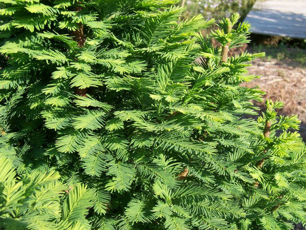 Энделайенсис – миниатюрный представитель, достигающий 2,5 м. Сучья – короткие и плотные, с веерообразными веточками. Иглы окрашены в голубовато-зеленый цвет, зимой становятся пурпурными.