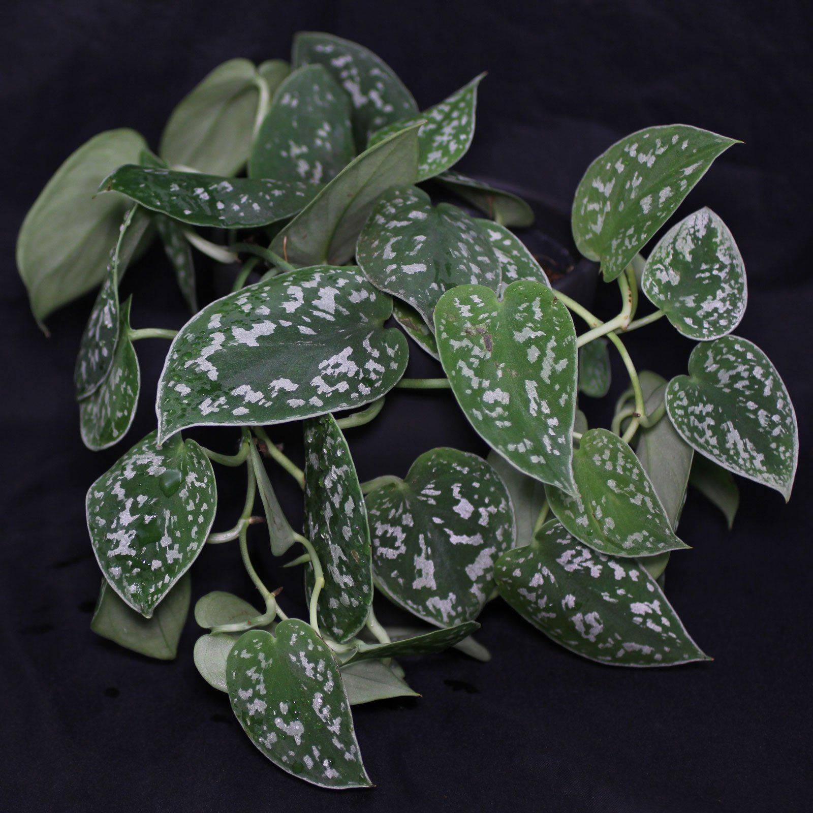 Обладает небольшими листьями, по форме напоминающими пухлые сердечки. Поверхность листа кожистая, по окраске часто имеют белые, молочные или серебристые пятна, что придает сциндапсусу оригинальный вид.