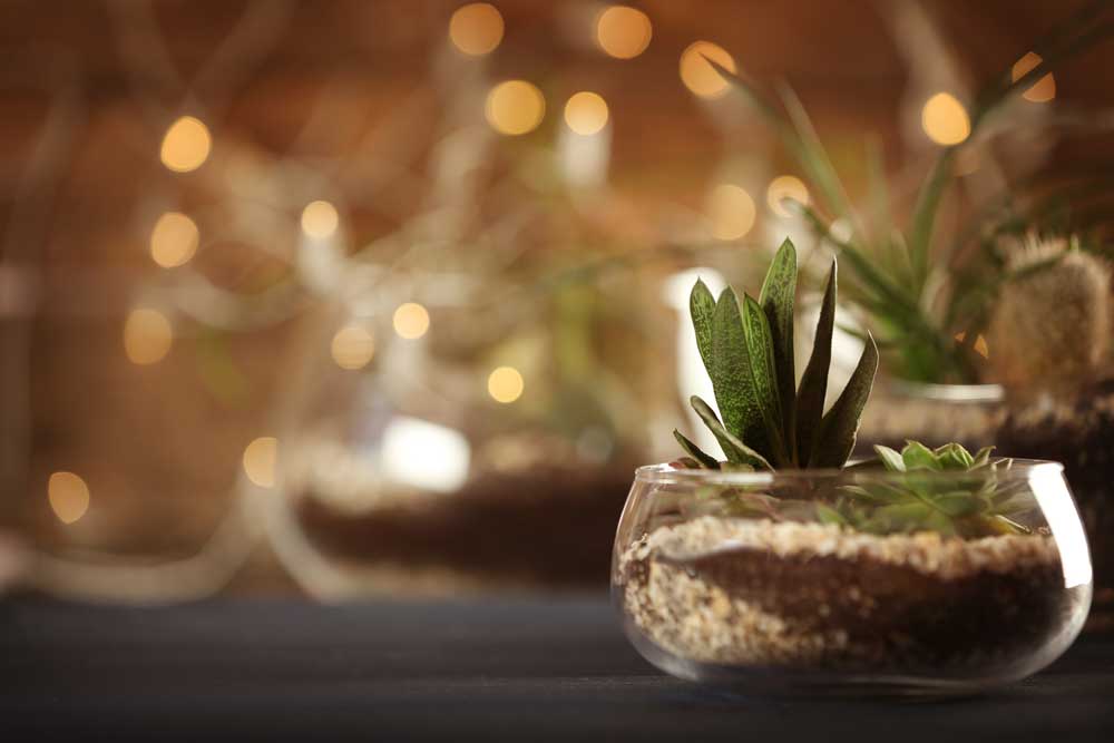Но выбор сосудов – далеко не главное при создании флорариума. Здесь речь идет о создании устойчивой экосистемы, поэтому нужно овладеть “матчастью”. Выбранные растения должны быть совместимы друг с другом, неприхотливы и расти медленно. Принцип здесь в том, что в закрытых сосудах растения должны развиваться самостоятельно, практически не требуя внимания со стороны хозяина. Главное для будущих владельцев – не ставить систему под прямые солнечные лучи и несколько раз в месяц поливать.