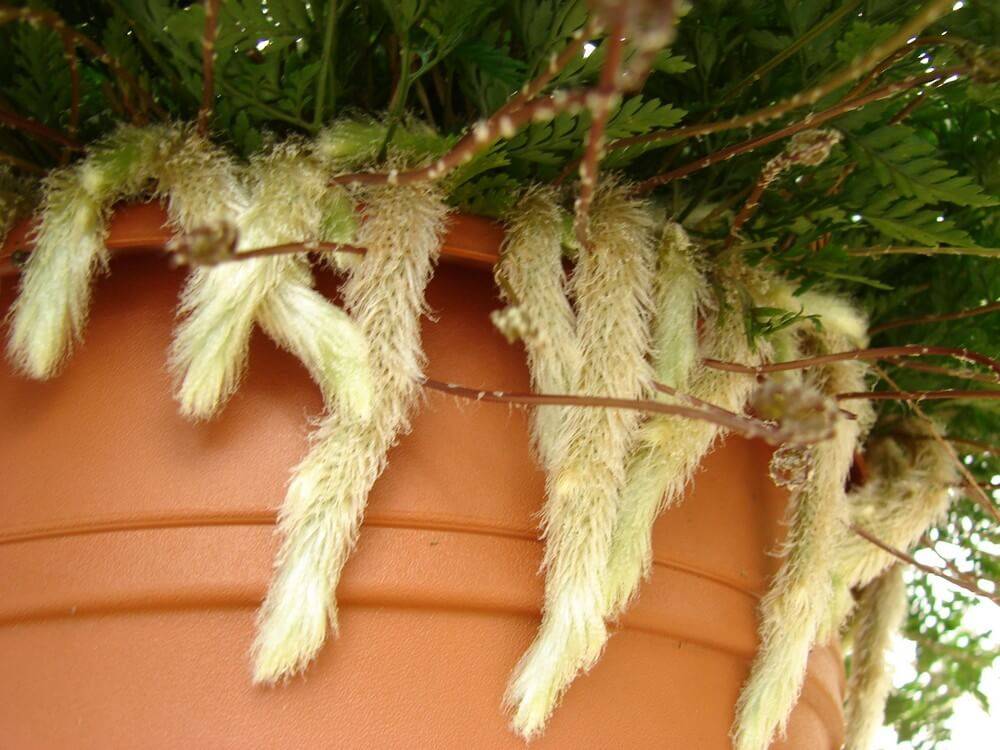 Поверхностные корни даваллии, быстро отрастая, выползают из горшка, придавая растению очень экзотический вид. Обрезать эти корни ни в коем случае нельзя – растение может не пережить этого. Благодаря мохнатым корням, свисающим из горшка, даваллию называют также «беличьи лапки» или «заячьи лапки».
