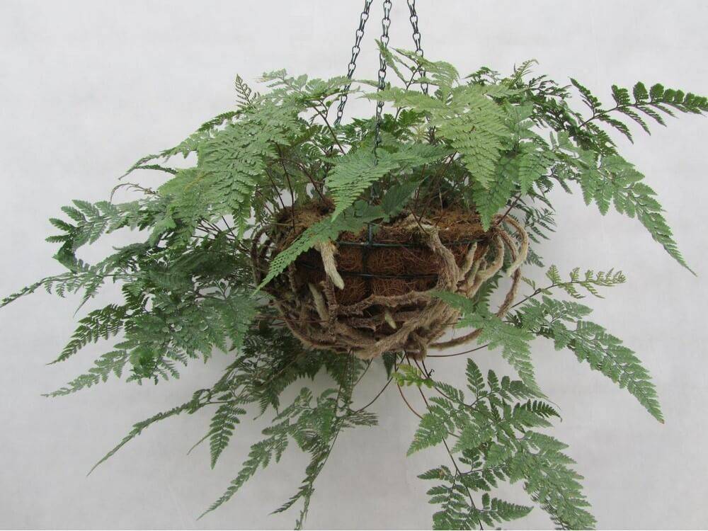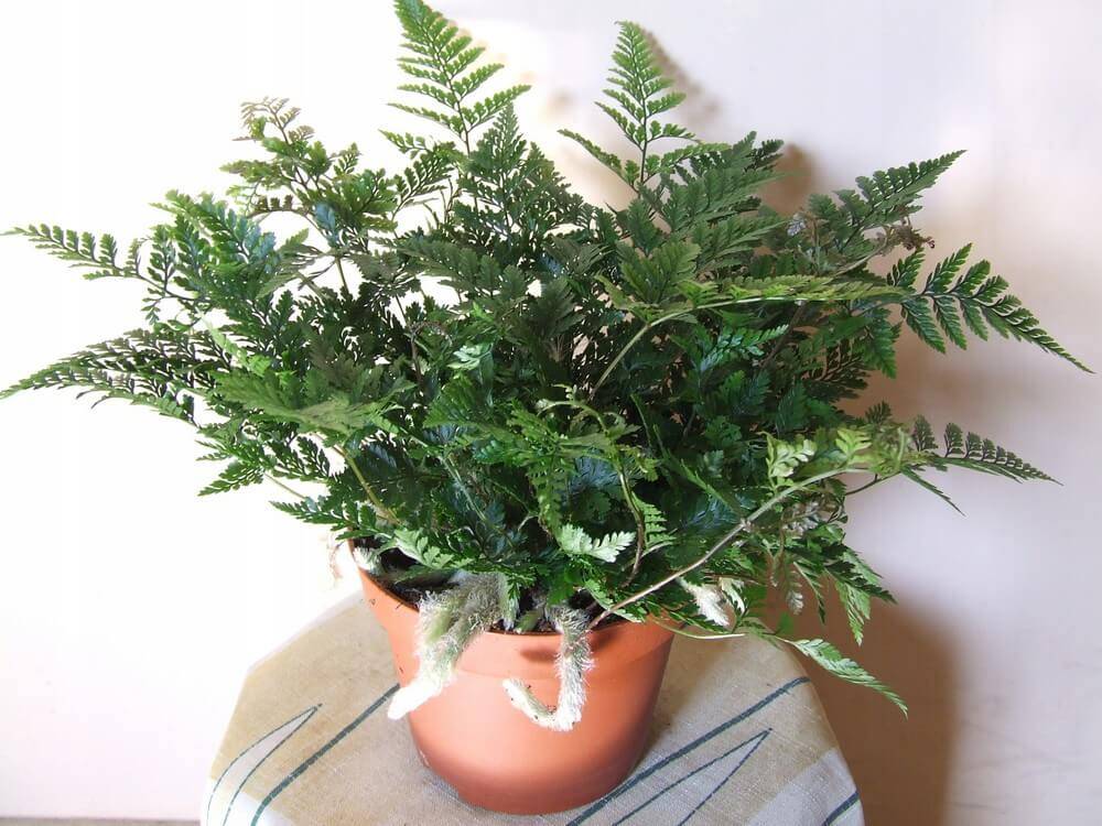 - Даваллия. В народе получил название «лапка зайца», связано это с тем, что ярко-рыжие мохнатые корни папоротника быстро разрастаются и свисают через край кашпо, придавая ему очень необычный вид.