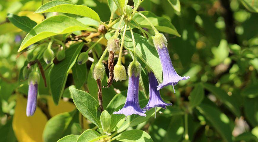 Бругмансия (Brugmansia) (на заходной фотографии) и дурман индийский (Datura metel) хорошо известны. Бругмансия требует настолько много места, что мне пришлось от нее избавиться. А дурман летом хорошо растет и цветет в саду.Иохрома южная (Iochroma australis) – кустарник, цветущий голубыми и белыми колокольчиками. Листья обладают слабым галлюциногенным эффектом. Растет быстро, как и калотропис, скоро упирается в потолок и поникает. Требуется обрезка.