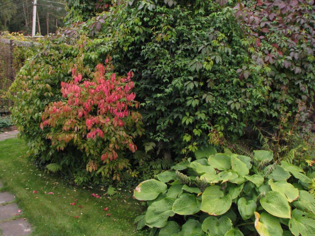 Если в ландшафтной группе растения расположены плотно друг к другу, нужно удалять часть побегов, не заметных с точки осмотра, и входящих в соприкосновение с другими деревьями или кустарниками. Бересклету от этого никакого вреда не будет, а композиция станет гораздо привлекательней, да и болезнями и вредителями соседи обмениваться станут меньше.