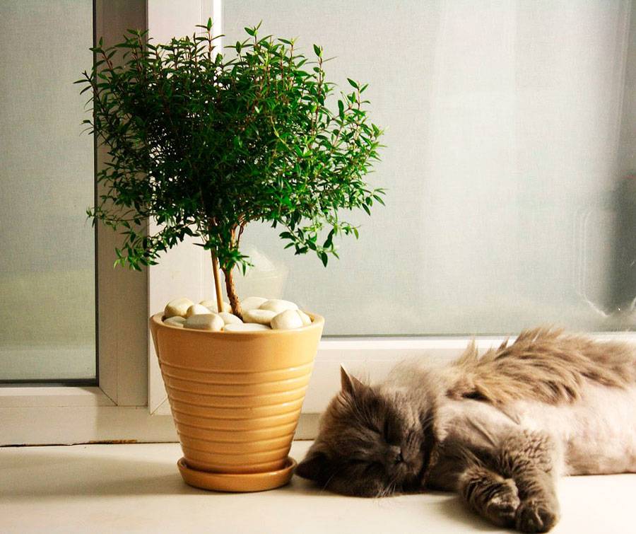 - Миртовое дерево любит хорошо освещенные поверхности, но плохо переносит жару, поэтому желательно, чтобы на него падал рассеянный солнечный свет.