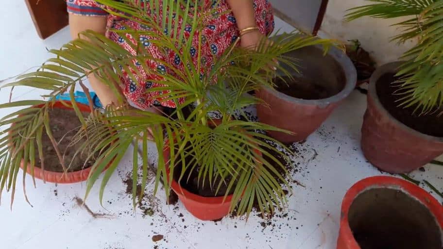 Затем просто переставьте (но осторожно!) отросток пальмы вместе с комком земли на корнях в новый горшок. После этого заполните свободное место в емкости почвосмесью