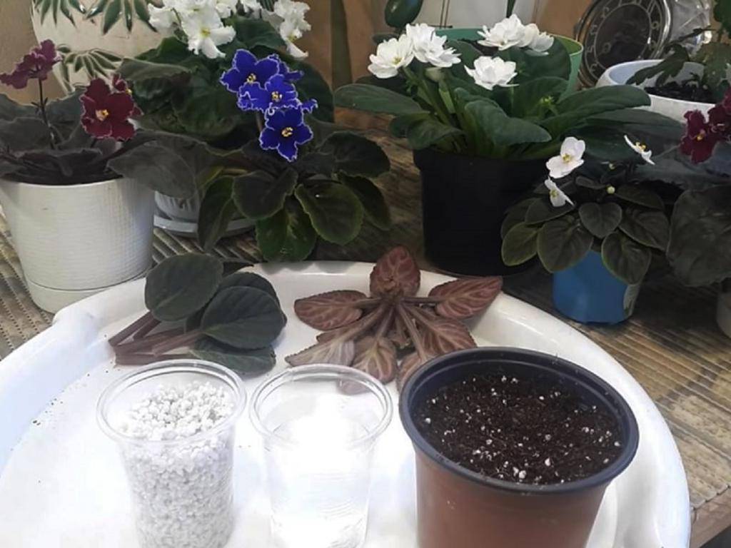 Способ 1. Как размножать фиалки листьями в домашних условиях (в воде):