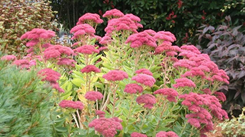 | Видный | Прямостоячий со светло-зелеными, серыми, голубыми листьями. Распускается в августе-октябре разными оттенками розового. |
