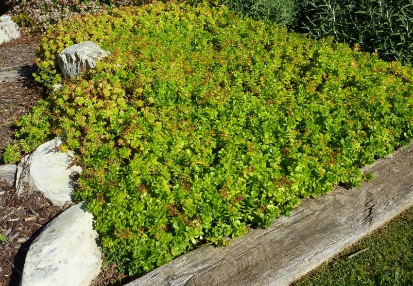 Стелющееся по земле травянистое растение с большим количеством мелких сочных побегов. В высоту оно не превышает 15 см, имеет небольшие, кучные, бледно — зеленые листья. В период цветения является прекрасным медоносом, хотя цветение и длится всего 1.5 месяца (с июня по июль) за это время вы наверняка успеете насладится красотой этого золотисто-желтого полотна (именно такого цвета соцветия у растения). Наиболее подходящие места посадки: альпийская горка или же создание пушистого декоративного газона. Распространенные сорта: Элегантс, Минус, Ауреум.