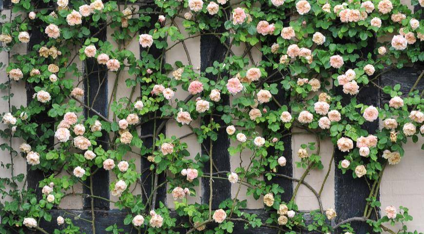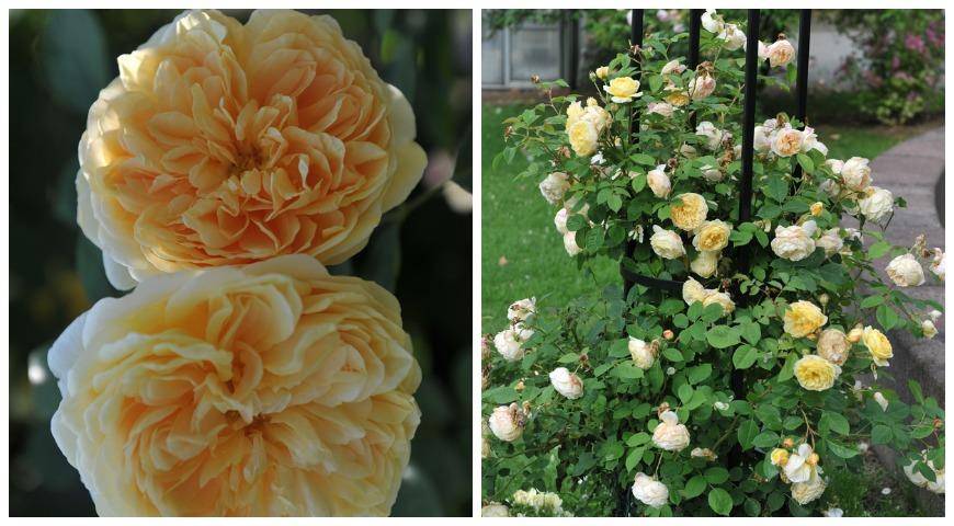 Типичный клаймбер, истинная элегантность роз Дэвида Остина. Вырастает до 2-3 м, цветки ошеломительной красоты диаметром 10-12 см, аромат тонкий, с нотками меда. Устойчив к мучнистой росе и черной пятнистости.