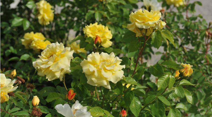 13 сортов желтых кустовых роз (шрабов) для выращивания в качестве плетистых