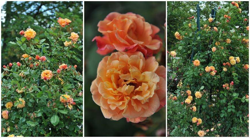 При выращивании на опоре сорт достигает до 2,5-3 м. Побеги прямые, что свойственно клаймберам, но плети легко направлять. Диаметр цветков около 6 см. Цвет насыщенный, абрикосовый, долго не выгорает.