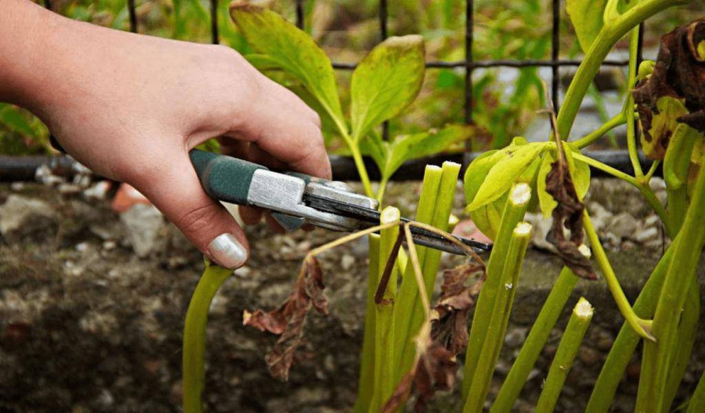 Стебли пионов срезают до уровня почвы