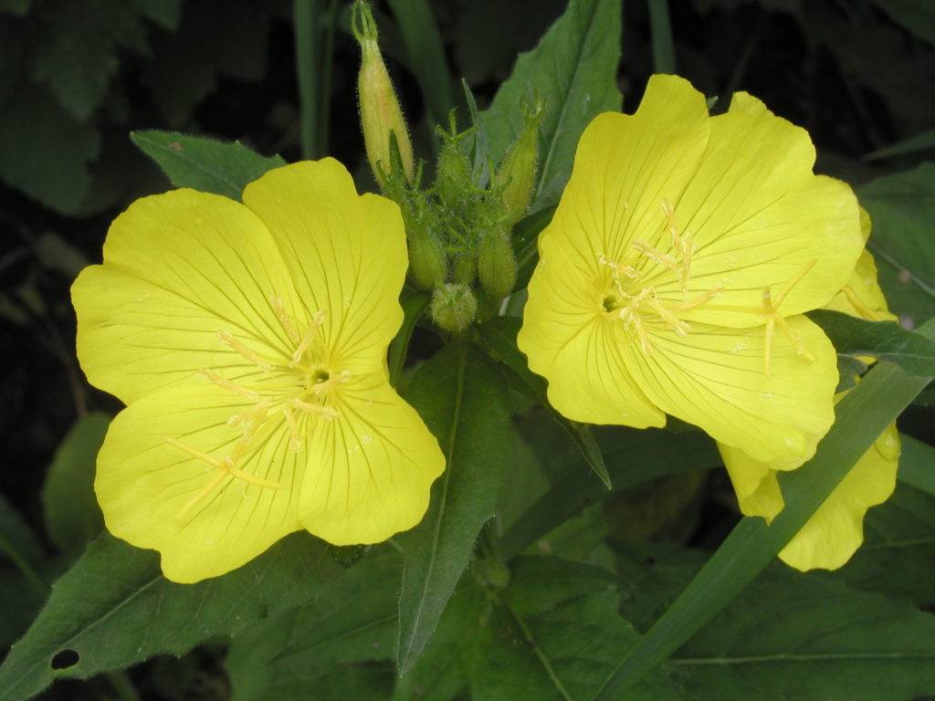 Или энотера вечерняя, или энотера «ночная свеча». Побеги у куста прямостоячие, а в высоту они достигают 1,2 метра. На их поверхности имеется множество коротеньких волосков. Цельные редкозубчатые почти цельнокрайние листовые пластины ланцетовидной формы имеют длину около 20 сантиметров. Цветки правильной формы в поперечнике достигают 50 миллиметров, они входят в состав конечных кистей. Окрашены они в лимонно-желтый оттенок, а раскрываются в облачную погоду либо в вечернее время. Наибольшей популярностью пользуется сорт такого вида Вечерняя заря: высота куста примерно 100 сантиметров, душистые цветки золотистого цвета обладают красным оттенком.