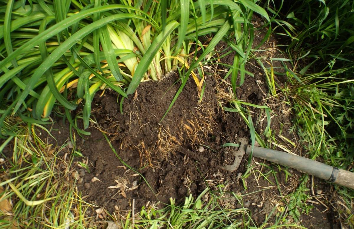 Итак, выкапываем лилейник вместе с земляным комом на корнях. Землю с корней смываем под напором воды