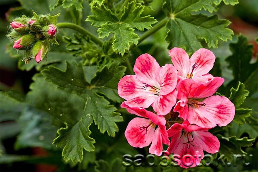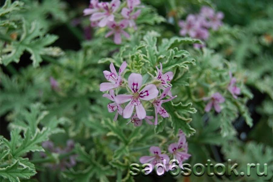 - Душистая. Сорт отличается своим приятным ароматом. Цветочки небольшие, чаще всего фиолетовой и розовой раскраски. Листва махровая, надрезанная на несколько частей. Используется данный сорт в медицине, парфюмерии, косметики, кулинарии.