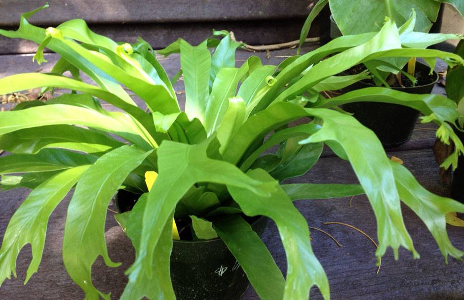 - Асплениум южноазиатский (australasicum). Крупное эпифитное растение. Листья вытягиваются до 1,5 м в длину и 20 см в ширину. Они собраны в плотную, узкую розетку. Выносливый папоротник.