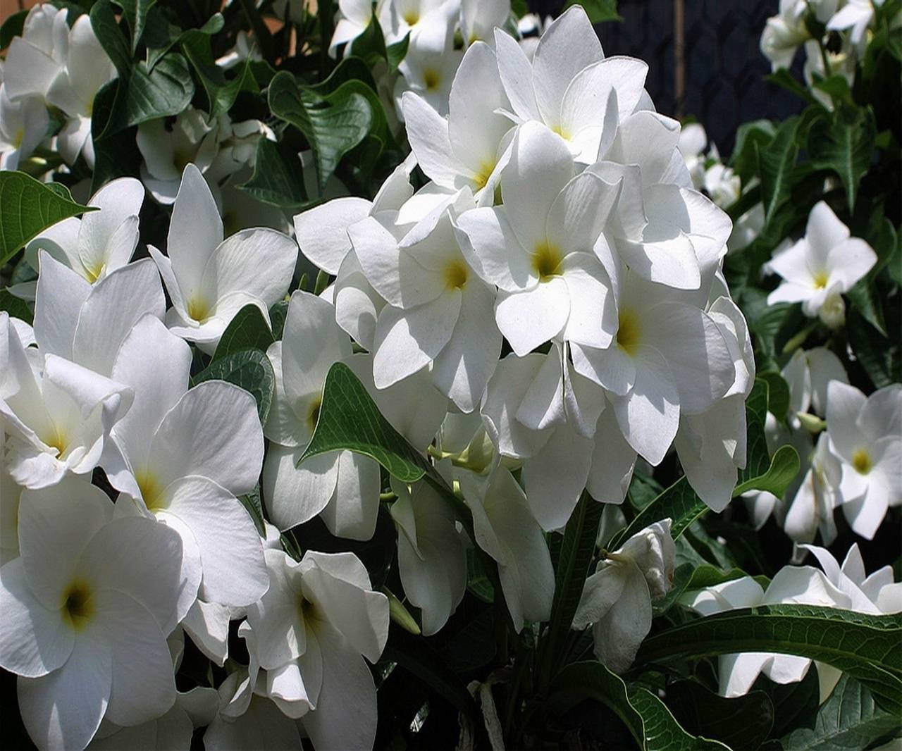 - Цветки. Может формироваться до 20 цветков на одной плюмерии. Крупные ароматные цветы варьируются по форме и цвету, в зависимости от вида. Аромат растения усиливается утром и поздним вечером.