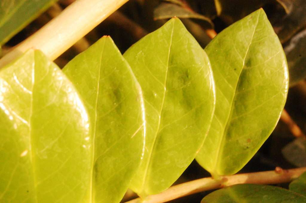 Листовые пластины замиокулькаса покрыты защитным воском, который препятствует испарению влаги