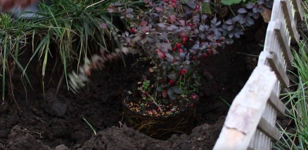 Сажают барбарис ранней весной, до начала распускания почек. Если кусты будут высаживаться одиночно, то расстояние между ними должно составлять от 1,5 до 2 метров. Посадочная яма для одного растения около 50 х 50 см и глубиной 35 см. При закладке живой изгороди высаживают два саженца на метр. Под посадку изгороди лучше выкопать траншею. Для улучшения дыхания корневого кома дно присыпают песком и засыпают яму питательной землёй с добавлением перегноя и древесной золы. Поливают и уплотняют землю.