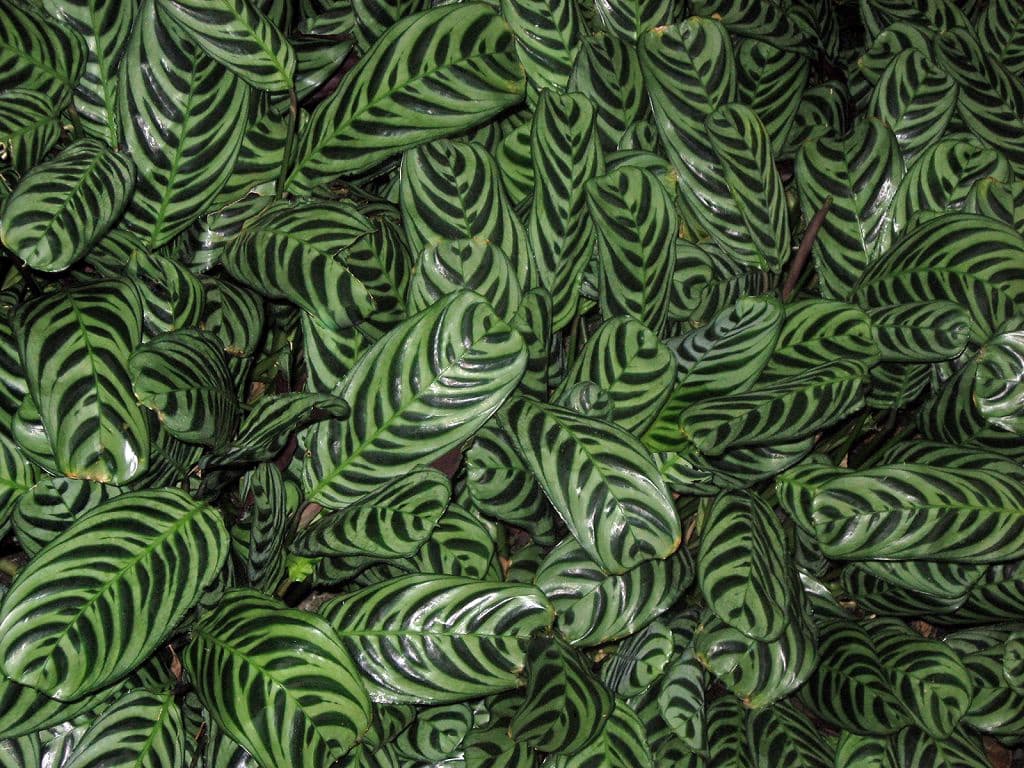 Яркая полосатая окраска листьев Калатеи Макоя привлекает взгляд