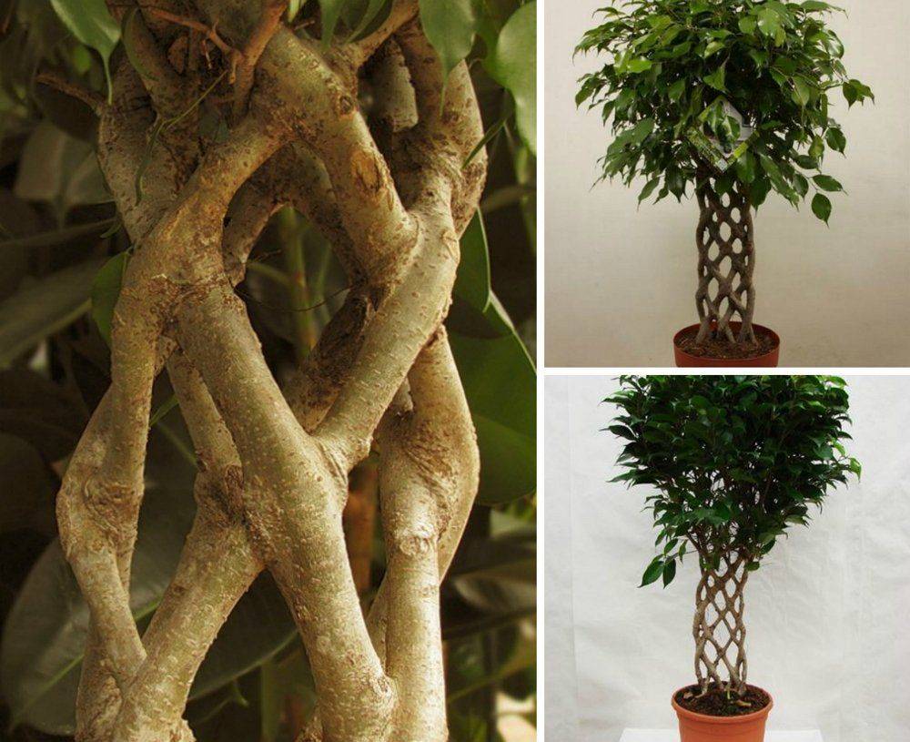 Для того, чтобы сформировать косу из стеблей, следует сплести три тонких стебелька в косичку. Большинство цветоводов, занимающиеся фикусами бенджамина, предпочитают проводить данную операцию при размножении растения.