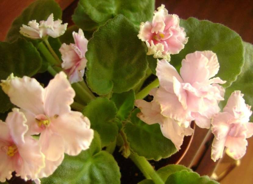 Но дружное шапочное цветение имеет обратную сторону – центр розетки остается без света, новые пластины не развиваются. После увядания венчиков должно пройти 2-3 месяца, чтобы фиалки обильно цвели повторно. Растениям нужно сформировать новые листья, так как над старыми больше не появится ни одного бутона.