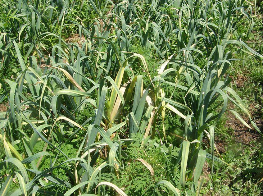 Во влажном климате сажайте зубки подальше друг от друга и, наконец, не переусердствуйте с азотом, так как избыток азота в почве делает листовую пластину более мягкой и уязвимой для патогена. Повышайте уровень сульфата калия в почве вокруг растений и регулярно опрыскивайте жидким листовым удобрением Фолирус Макси с повышенным содержанием серы для профилактики ржавчины чеснока.