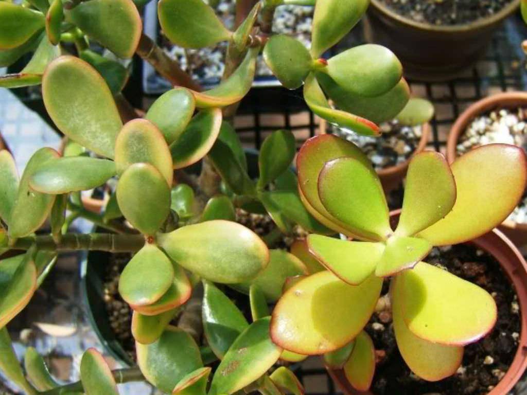 Листья крассулы желтеют на ярком солнце, по краям листьев появляется желтая кайма @Garden Manage
