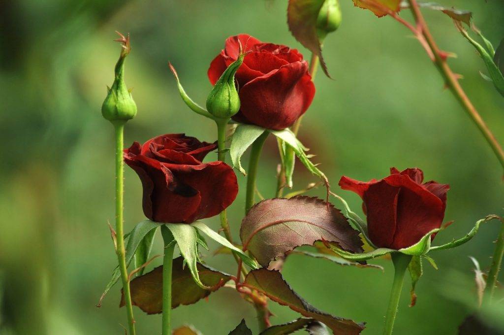 - на цвет стеблей и листьев — здоровая роза обладает насыщенно-зелеными глянцевитыми пластинами, острыми шипами и 3-4 крепкими побегами.