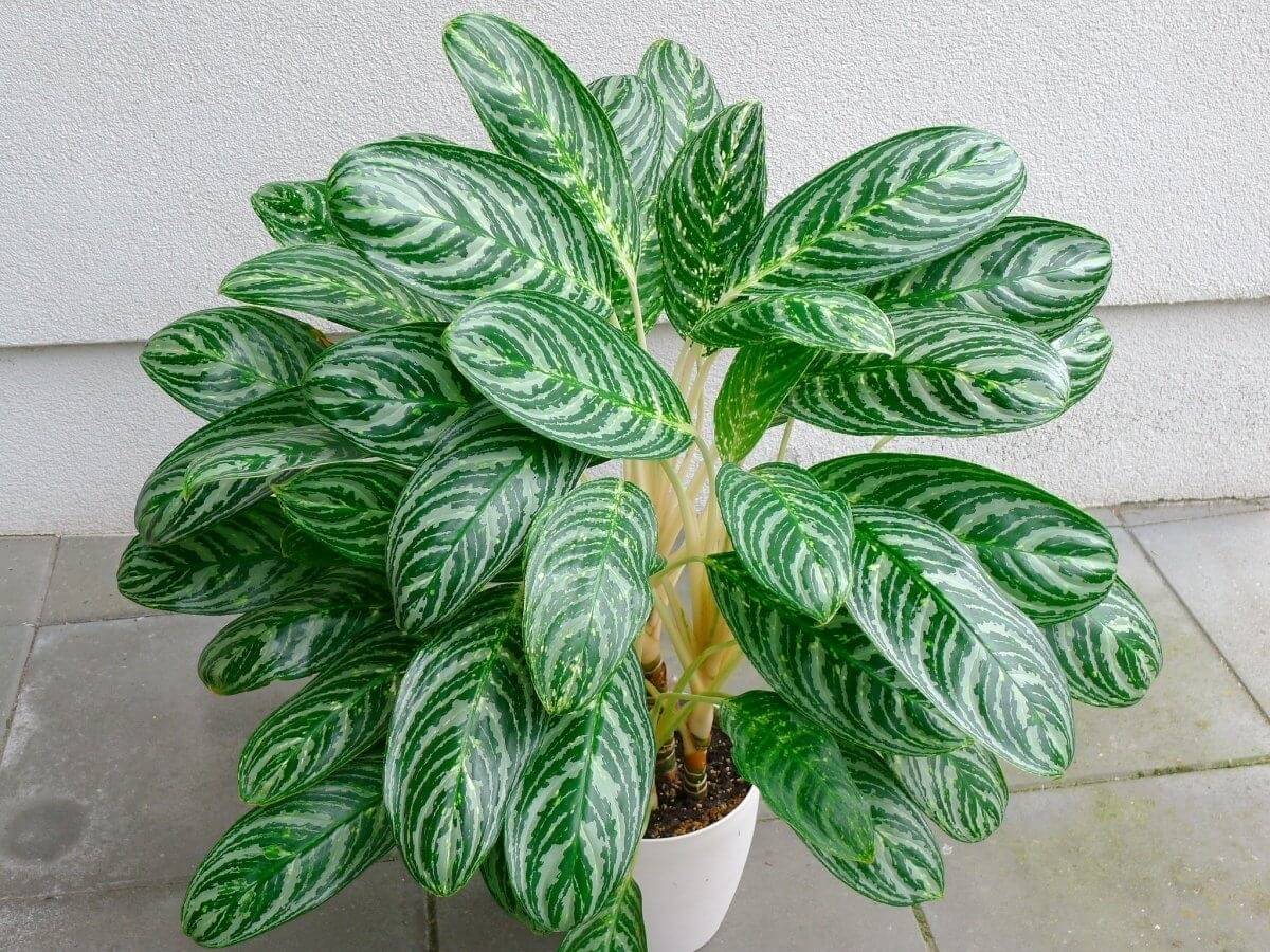Аглаонема имеет вытянутые полосатые листья. Она медленно растет, поэтому ее не придется часто пересаживать в новый горшок. Также аглаонема не любит ветер и дым, поэтому ее не рекомендуется ставить на балкон, особенно если вы там курите. Ухаживать за ней не составит труда: