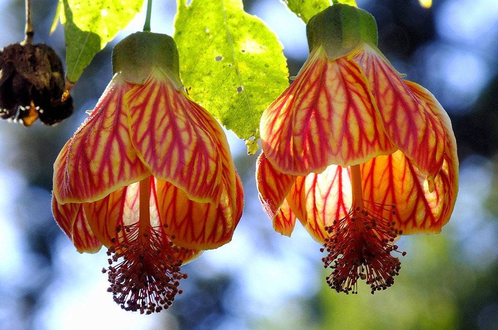 Ежегодно с наступлением осени это оригинальное растение, именуемое также комнатным кленом, радует своим пышным цветением. При этом период распускания бутонов может продолжаться на протяжении 6-12 месяцев. В это время нужно часто и обильно поливать абутилон, следя за тем, чтобы у корней не было застоя влаги. Сквозняки, резкие похолодания и яркий свет растению не по нраву.