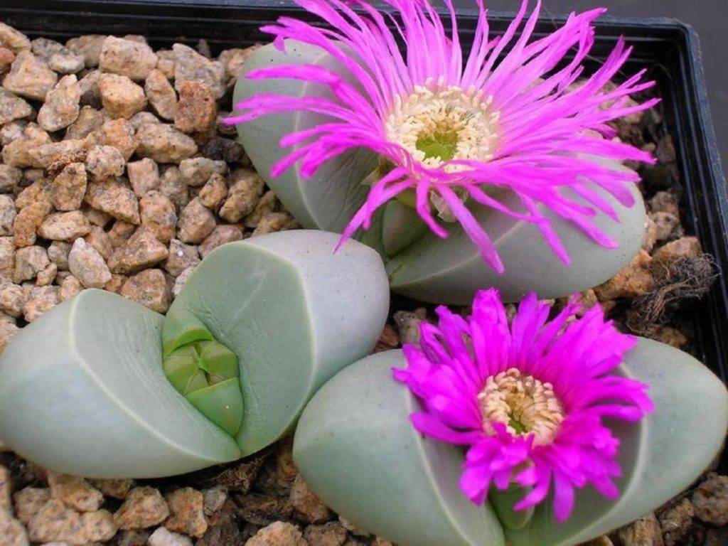 Эти камни очаровывают и вдохновляют. Редкостью является цветение данного вида. Из щели появляется маленькая красота — нежный цветок. Как будто трава прорастает сквозь камни! Распространить такие растения сложно. Обязательным условием пересадки станет сохранение шейки, которая умеет плодоносить, обкладывая его камнями
