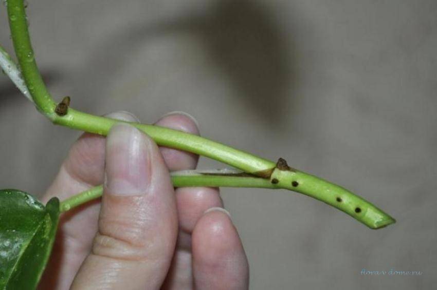 - Черные пятна. Причиной становится очень опасная болезнь, а именно загнивание корневой системы. Возникает из-за избыточного полива. Удалите поврежденные корни, обработайте срезы активированным углем и посадите растение в новую почву. Не поливайте его некоторое время.