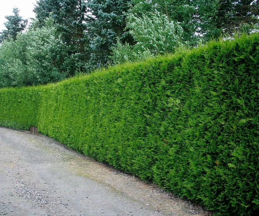 Для создания плотной живой изгороди из туи саженцы размещаются на прямой линии на расстоянии 0,5 метра друг от друга.