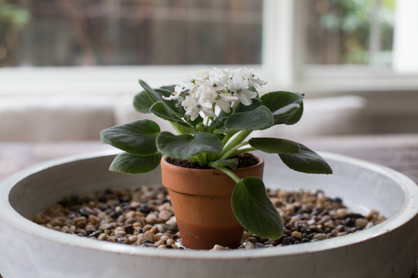 Повысить влажность воздуха до необходимых показателей можно, поставив рядом с растением увлажнитель. Если такой возможности нет, то можно попробовать более бюджетный вариант: горшочек с фиалкой помещают в поддон с влажным керамзитом и периодически увлажняют его.