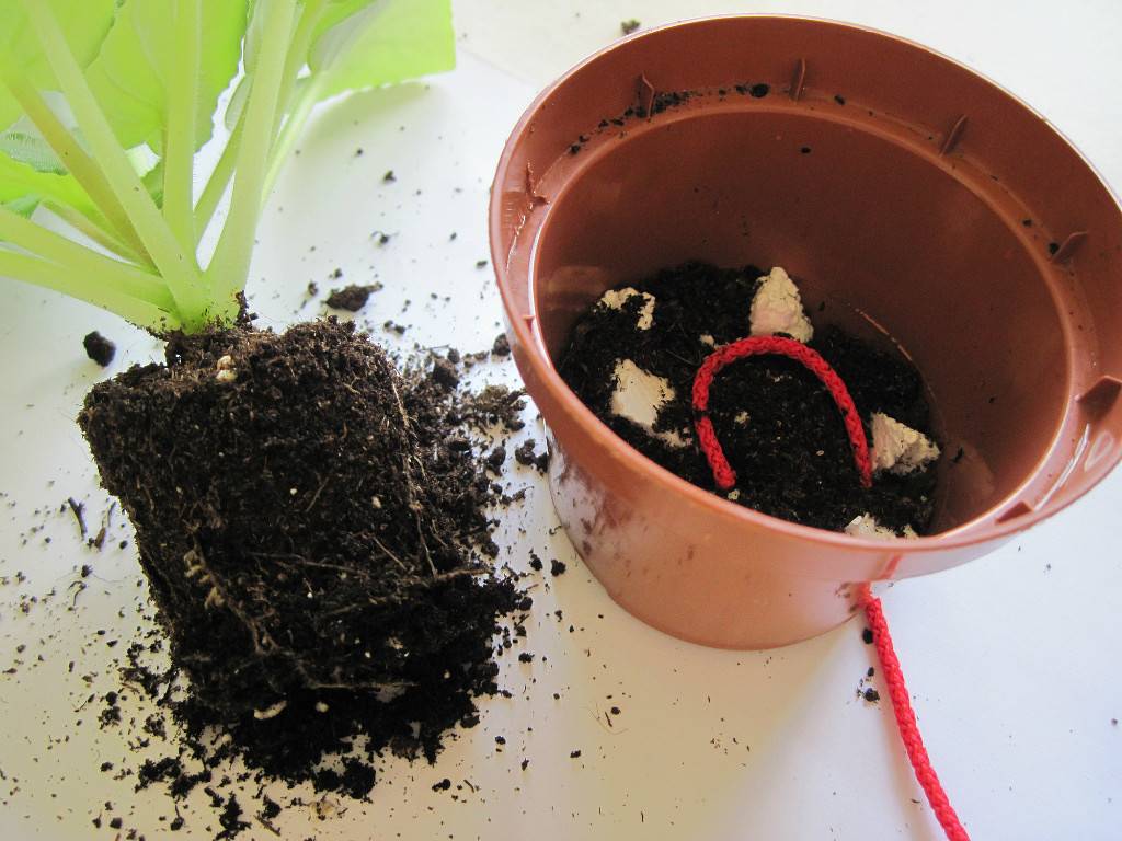 - Удалить старый фитиль. Стряхнуть землю с корней.