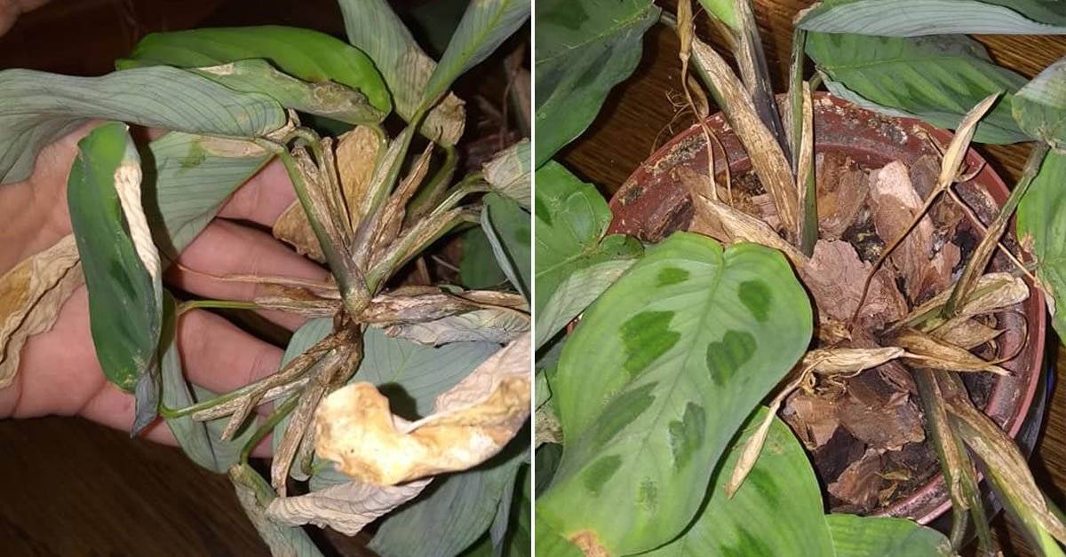 Маранта любит повышенную влажность, но иногда владельцы перебарщивают с ней и появляется серая гниль.