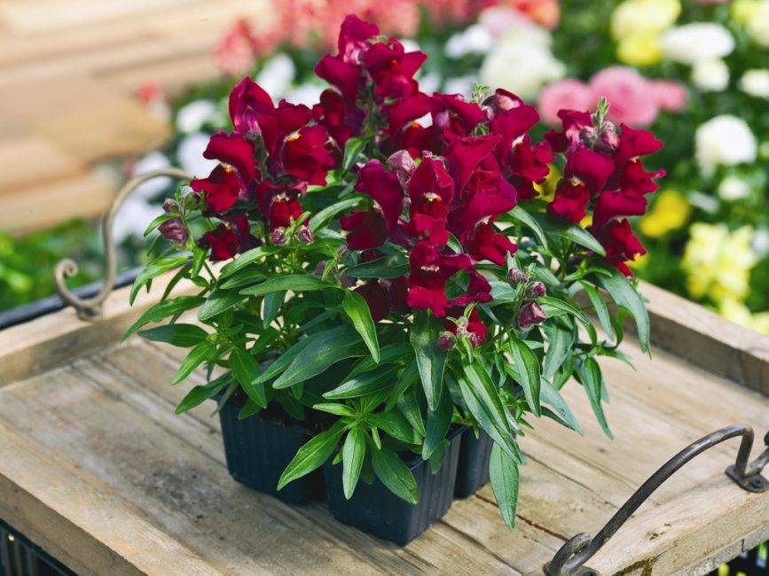 - Львиный зев Опус красный самый популярный из этой обширной серии, цвета варьируются от розовых до лавандовых