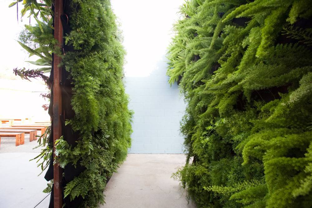 Зеленая стена с применением плюща, сингониумов и бромелий.