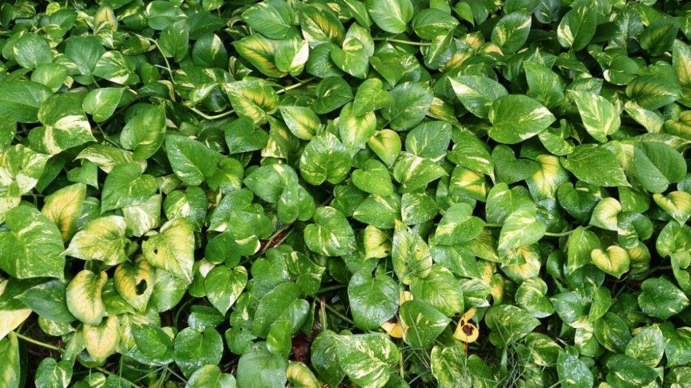 Epipremnum (сциндапсус) – это лиана, которая имеет красивые крупные листья. Неприхотлива, хорошо разрастается, поэтому необходимо прищипывать. При использовании в фитомодуле хорошо держит рисунок. В домашних условиях не цветет, корневая система мочковатая. На стеблях образуются воздушные корни, в последствие деревенеют.
