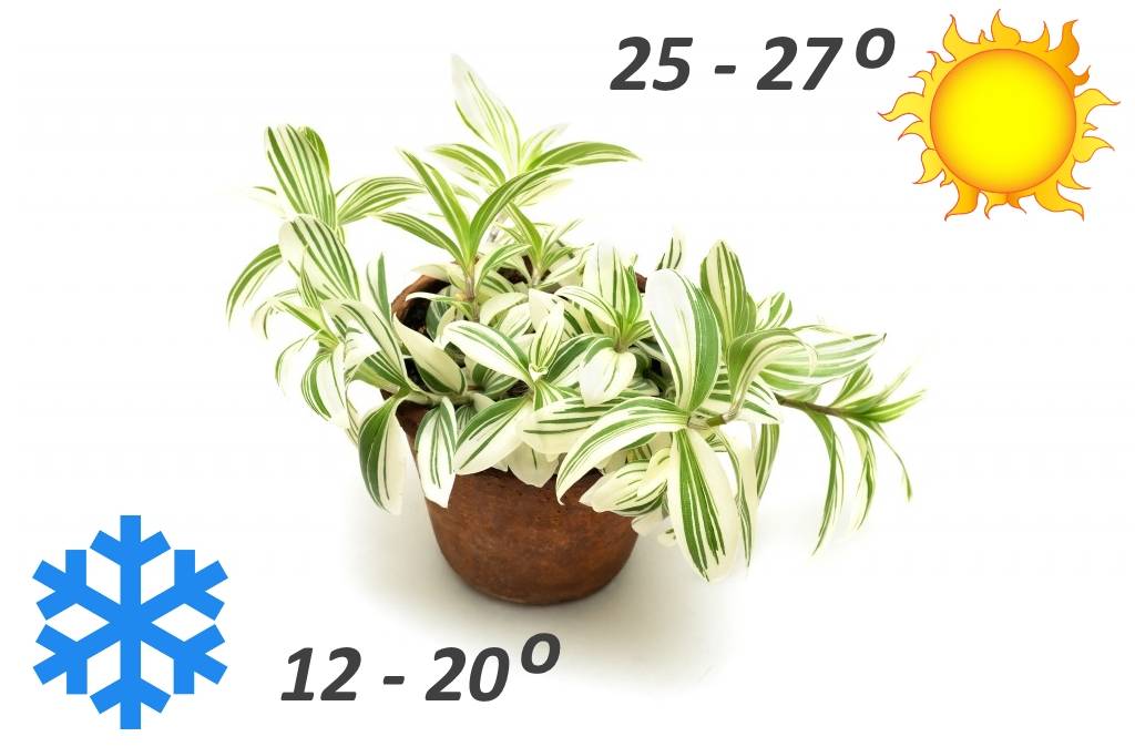 Растение комфортно себя чувствует в квартире, поэтому создание специфического температурного режима не требуется. Летом цветок следует содержать при температуре 25-27°C, а зимой её лучше снизить до 12-20°C. Традесканция плохо переносит воздействие сквозняков, непременно учтите этот факт при размещении вазона на террасе или балконе.