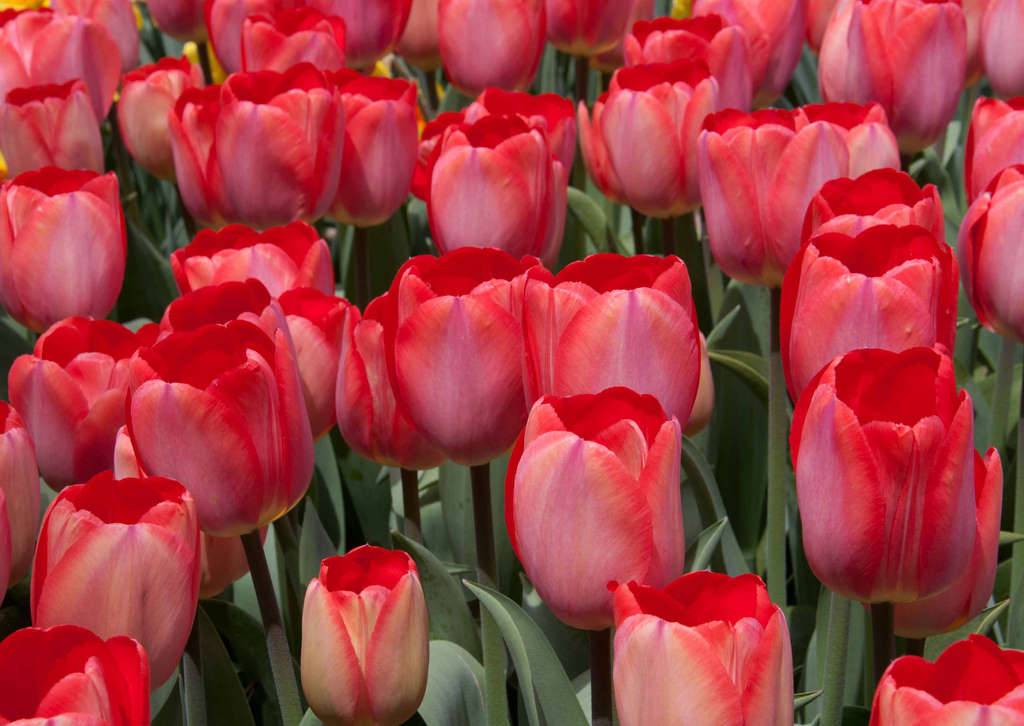 «Руби Ред» — классика жанра, тюльпаны со средней длины мощными цветоносами, увенчанными крупными, бокаловидными пунцовыми бутонами. После срезки цветы этого сорта долго сохраняют форму и не вянут.