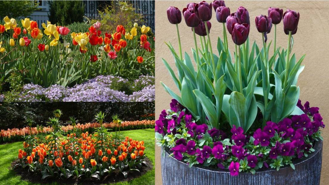 Дизайнерское решение совмещение тюльпанов с иными растениями