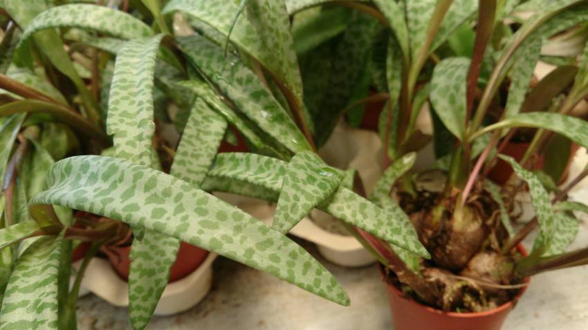 - Особенности ухода. Так как дримиопсис обладает ярко выраженным периодом покоя, который приходится на зимнее время, то следует понижать показатели тепла до 14–16 градусов. Уровень освещенности при этом должен быть высоким, а поливы редкими. Также рекомендуется поворачивать горшок с растением на 1/3 оборота раз в 7 дней — это поможет кроне расти более равномерно. Так как луковиц-деток появляется много, то они буквально выталкиваю материнскую луковицу на поверхность из грунта, и в этом случае из нее не сможет появиться ни цветоносы, ни листовые пластины. Если замечены такие симптомы, то требуется провести внеплановую пересадку.
