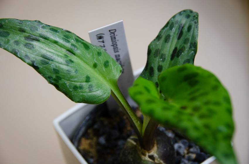 При поддержании привычной для растения температуры листья Дримиопсиса на протяжении круглого года остаются яркими и зелеными, средняя по площади листовая пластина не теряет своей упругости даже после отцветания колосков.