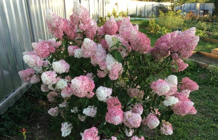 Неприхотливый сорт с белыми соцветиями, которые к осени приобретают розовато-сиреневатый оттенок. Высотой 2 м.